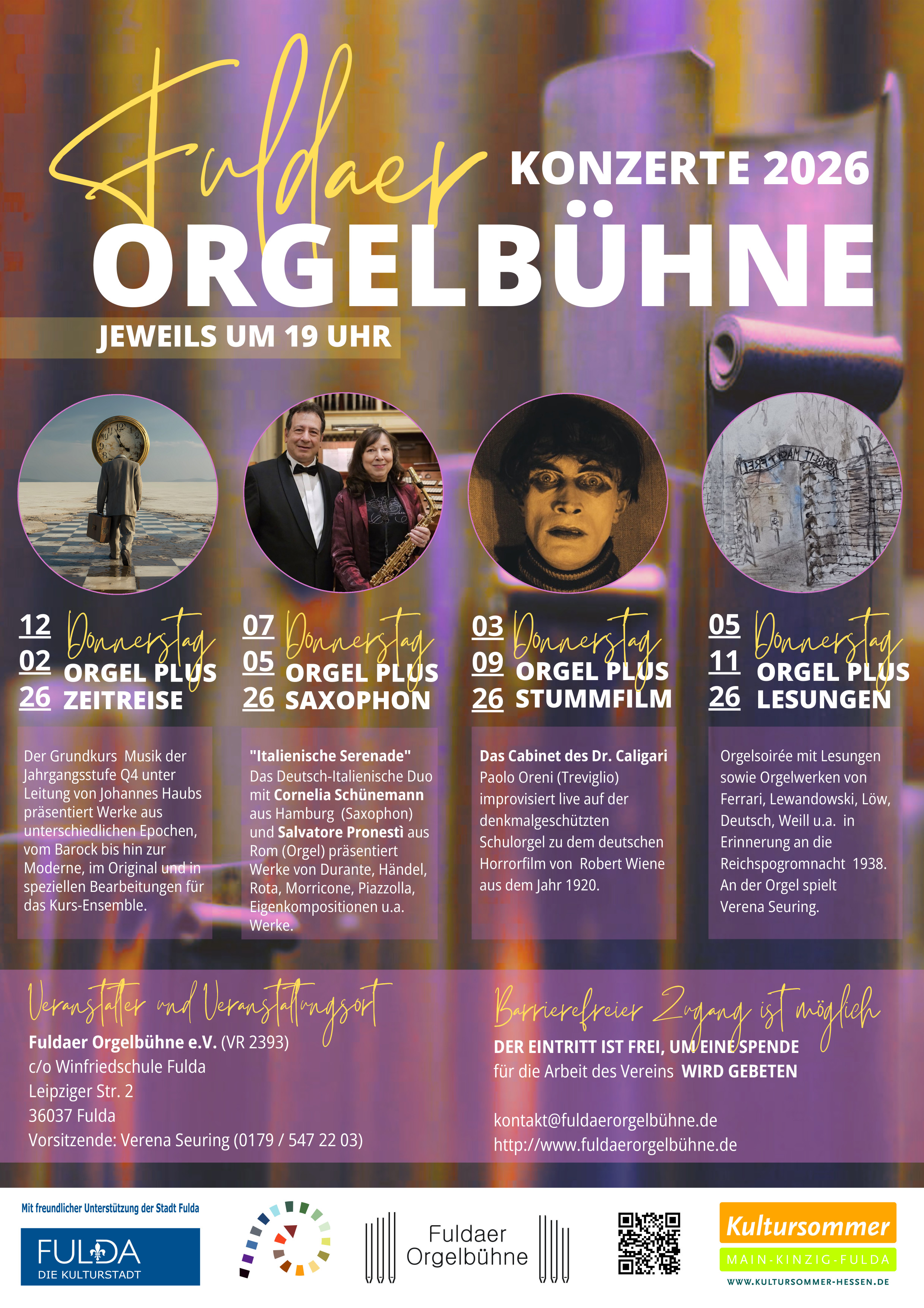 Im April 2011 ist an der Winfriedschule Fulda eine Konzertreihe unter dem Motto „Fuldaer Orgelbühne“ von Verena Seuring ins Leben gerufen worden. Dabei findet jeden ersten Donnerstag im Monat (außer in den Schulferien) Orgelsoireen bzw. Orgel (Plus) Konzerte um 19:00 Uhr statt.